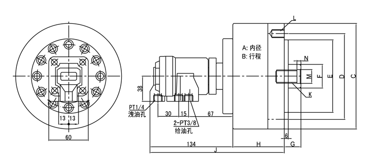 ·中實(shí)回轉(zhuǎn)油缸安裝可由尾端鎖固。