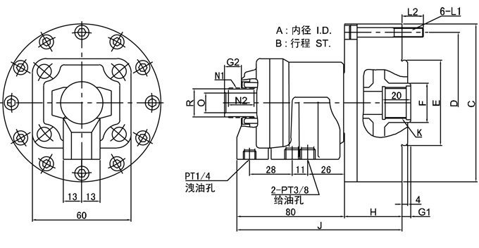 << TK超短型中空回轉(zhuǎn)油壓缸 >> RS-N行程控檢出型回轉(zhuǎn)油壓缸