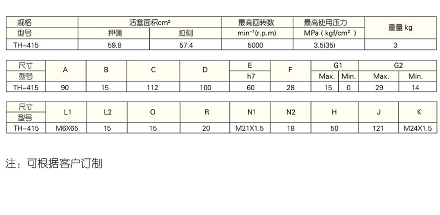 TH-415型小通孔型回轉(zhuǎn)油壓缸技術(shù)參數(shù)