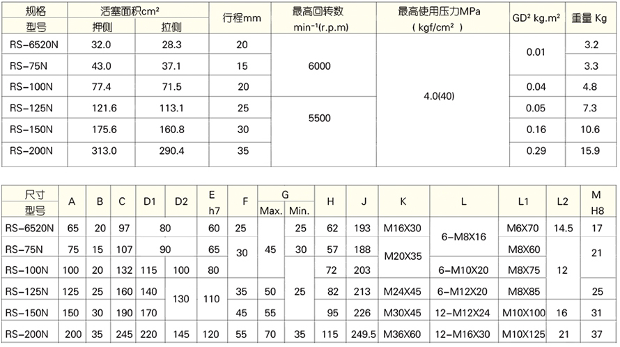 RS-N行程控檢出型回轉(zhuǎn)油壓缸參數(shù):